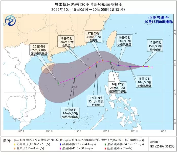 另外,菲律宾以东洋面热带低压于今天凌晨生成。预计,低压中心将以每小时20-25公里的速度向偏西方向移动,强度逐渐增强,将于今天白天发展为今年第20号台风,17日凌晨前后将移入南海东北部海面,最强可达强热带风暴级或台风级(11-12级,30-35米/秒),尔后转为西偏南方向移动,强度逐渐减弱。 图片来源:中央气象台网站