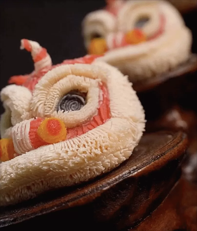 via @老饭骨 这观赏性极强的酥点,还曾在APEC上,震惊外国元首夫人,彻底让人见识到了中式面点的精深。 手艺人一炸成型,一般人一炸坨。 弹幕纷纷表示,很喜欢师傅做着我看不懂的东西,还轻描淡写、面无表情的样子。 在蜜枣酥之前,更让全民惊叹的美食顶流,是醒狮酥。 via @张虎 这只活灵活现的岭南雄狮,制作过程之复杂与精妙程度,国外几乎无一人愿意挑战。 只见上一秒,你看它还是两块方方正正的直酥,和两块层层卷起的圆酥。 方的层层叠叠,数都数不清有多少层,圆的也和螺旋纹一样,看得人头皮发麻。