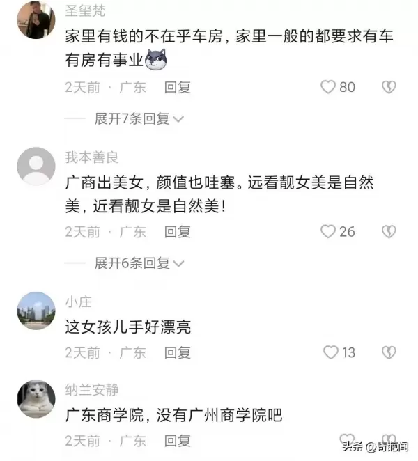 网友观点: 有网友评论说,家里有钱的不在乎车房,家里一般的都要求有车有房有事业。 还有网友评论说,这是好女孩,虽然带着口罩,我都知道她很漂亮,因为人美心善。 也有网友评论说, 我觉得娶老婆还得娶广东的,不是因为她有钱,主要是她们温柔贤惠。