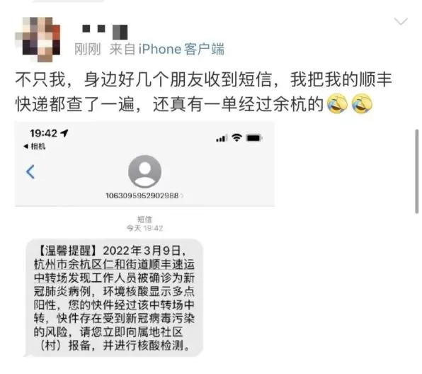 不明链接不要点!如果收到相关短信,可以在国家卫生健康委推出的"同行密接人员自查"的小程序里先自行筛查。 你的快递被检测出新冠阳性 诈骗分子伪冒"快递客服"给你打电话,谎称你的快递检测出了新冠阳性,已被销毁,但可以申请理赔。在你加了"客服"好友后,骗子向你发送虚假"官方网站",并诱导你填写个人支付信息,盗走你的资金。此时还有一个大坑在等着你跳入。骗子以你的支付信用不足、理赔渠道未开通、赔款无法到账等为由,诱导你进行贷款,将钱转至诈骗分子账户,骗取钱款。