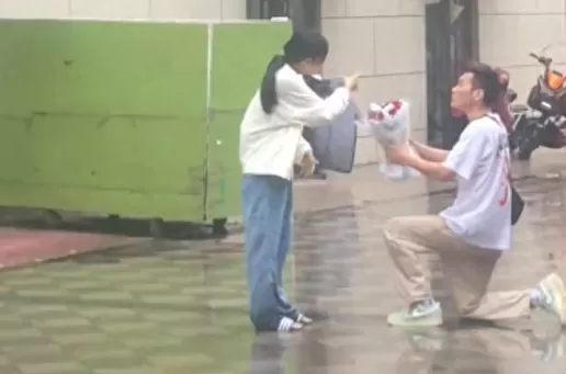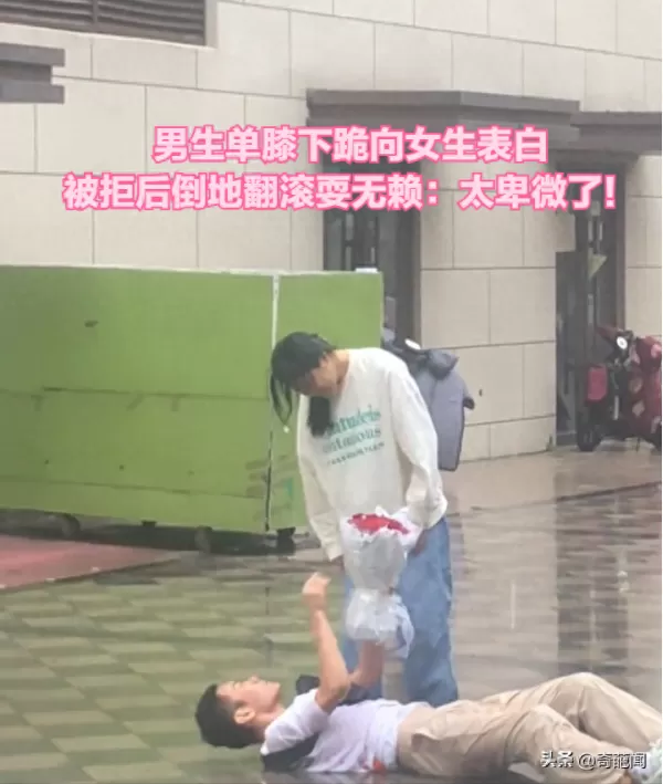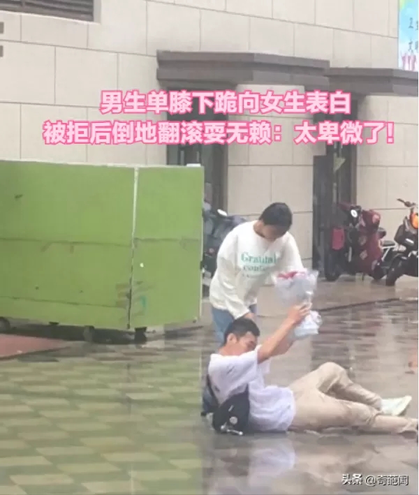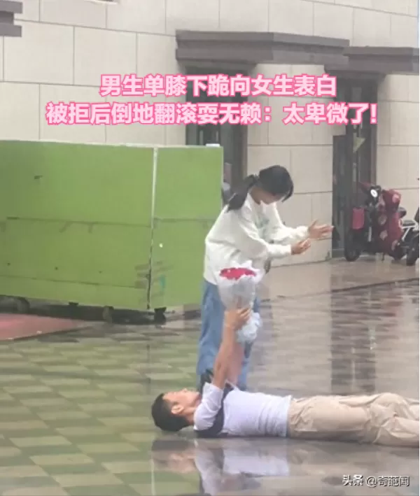 男生单膝下跪向女生表白 被拒后倒地翻滚耍无赖:太卑微了