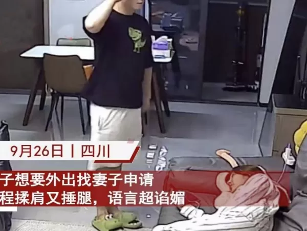 男子向老婆申请外出要零花钱 全程揉肩捶腿各种示好 画面太甜蜜
