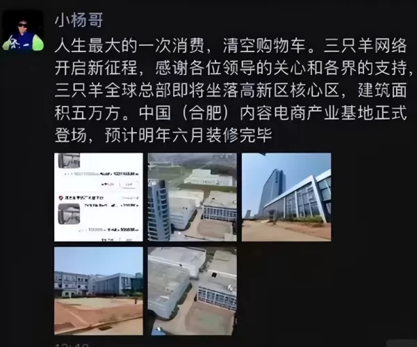 目前,合肥市和中山市的市场监管局都已经针对这件事展开调查。 据悉,小杨哥曾凭借拍摄搞笑短视频走红,其家人也经常出镜,粉丝数如今超过9999万。 前段时间,他花费1.03亿元在合肥高新区买下了一栋面积5万平方米的大楼,准备作为自己的直播基地总部,也在网上引起了热议。