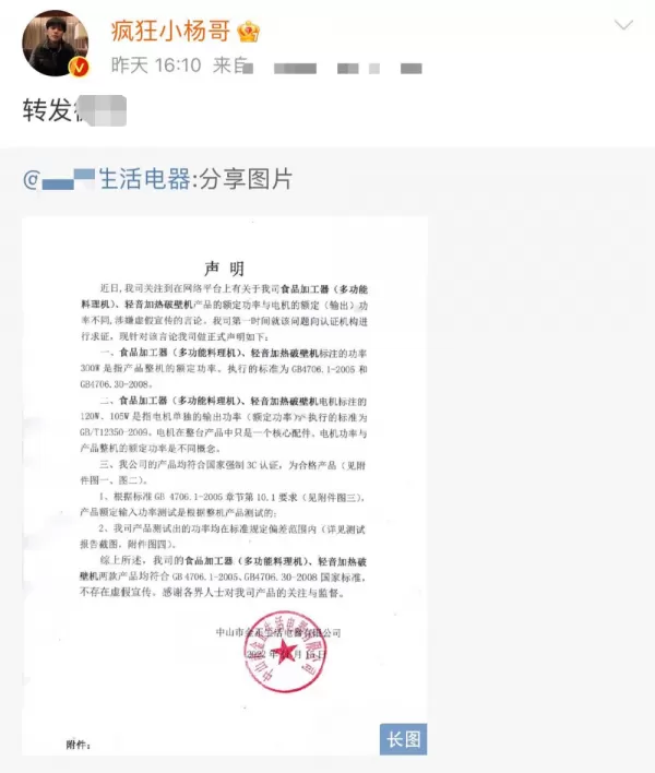 说起来,事情的起因是,小杨哥在自己的直播间销售了破壁机和绞肉机。