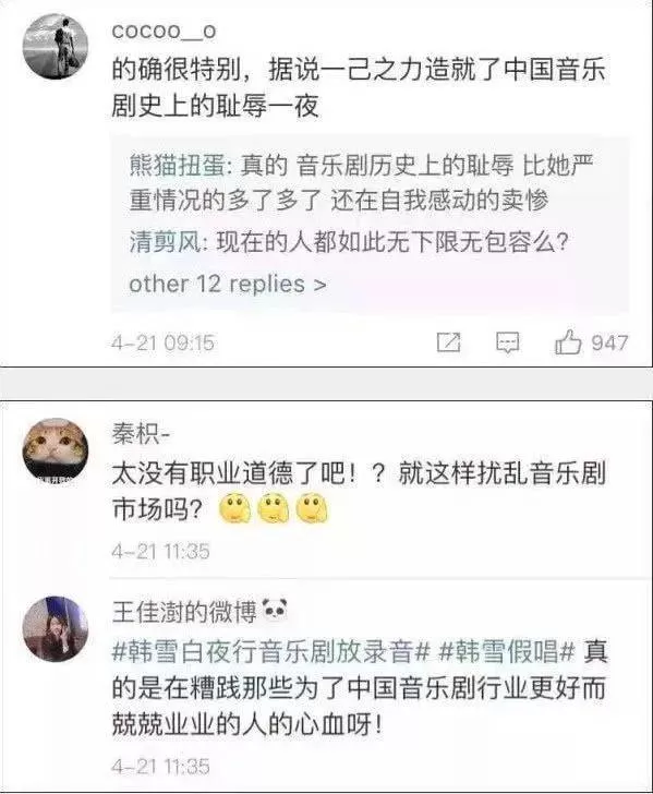 但韩雪的道歉并没有平息网友的愤怒,因为在网友看来,《白夜行》在开演前才开通退票渠道,打的就是个时间差和信息差,观众们都到现场了,自然不会选择退票了,这样的操作简直就是音乐剧的耻辱。